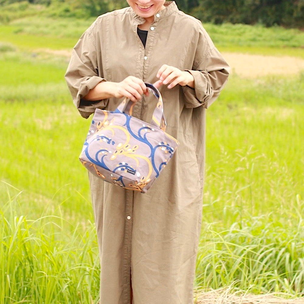 お財布やハンカチ、ティッシュ、アルコールスプレーにマスクケース、折りたたみ傘、ポーチ、携帯電話などなど、日々の必需品をさっと入れてお出かけください。小ぶりなので、パッと持って日々のお買い物やランチなどにどうぞ。
