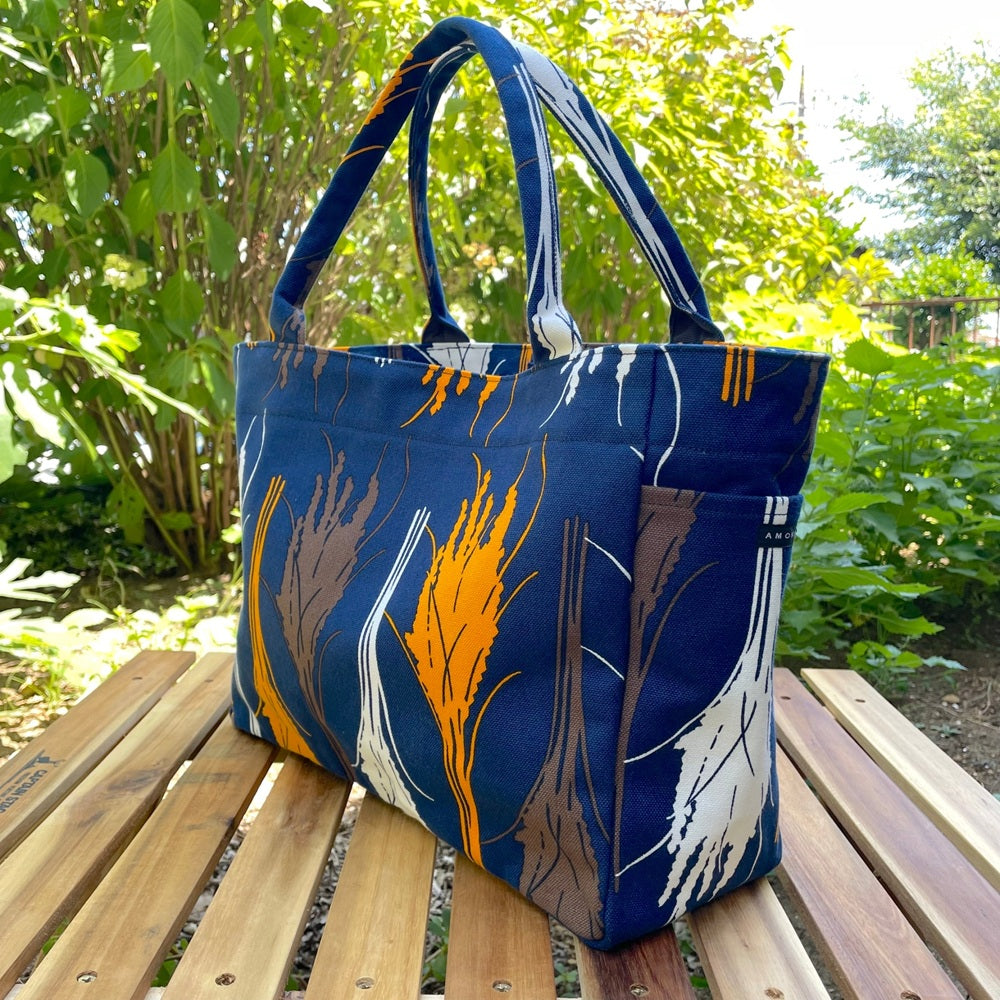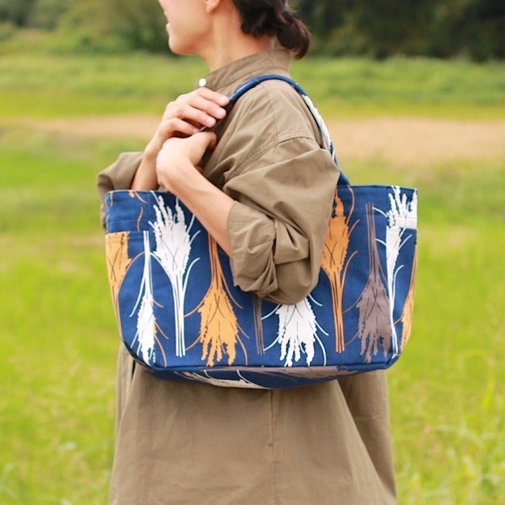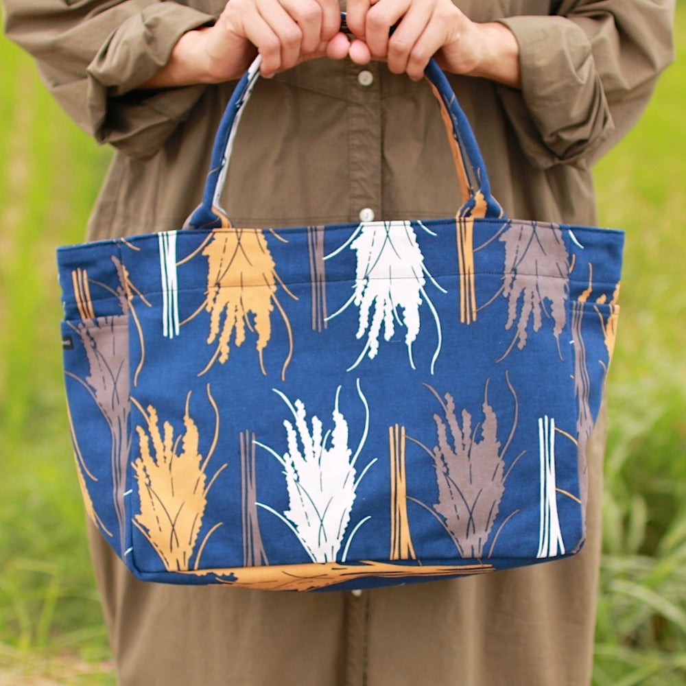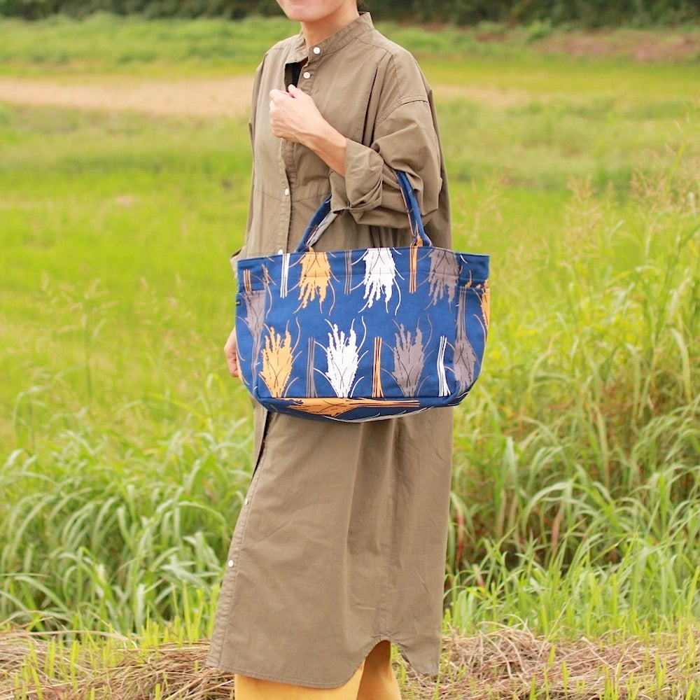 トート(M・サイドポケット付)「イネ」オイシイネ!_稲穂(ネイビー)