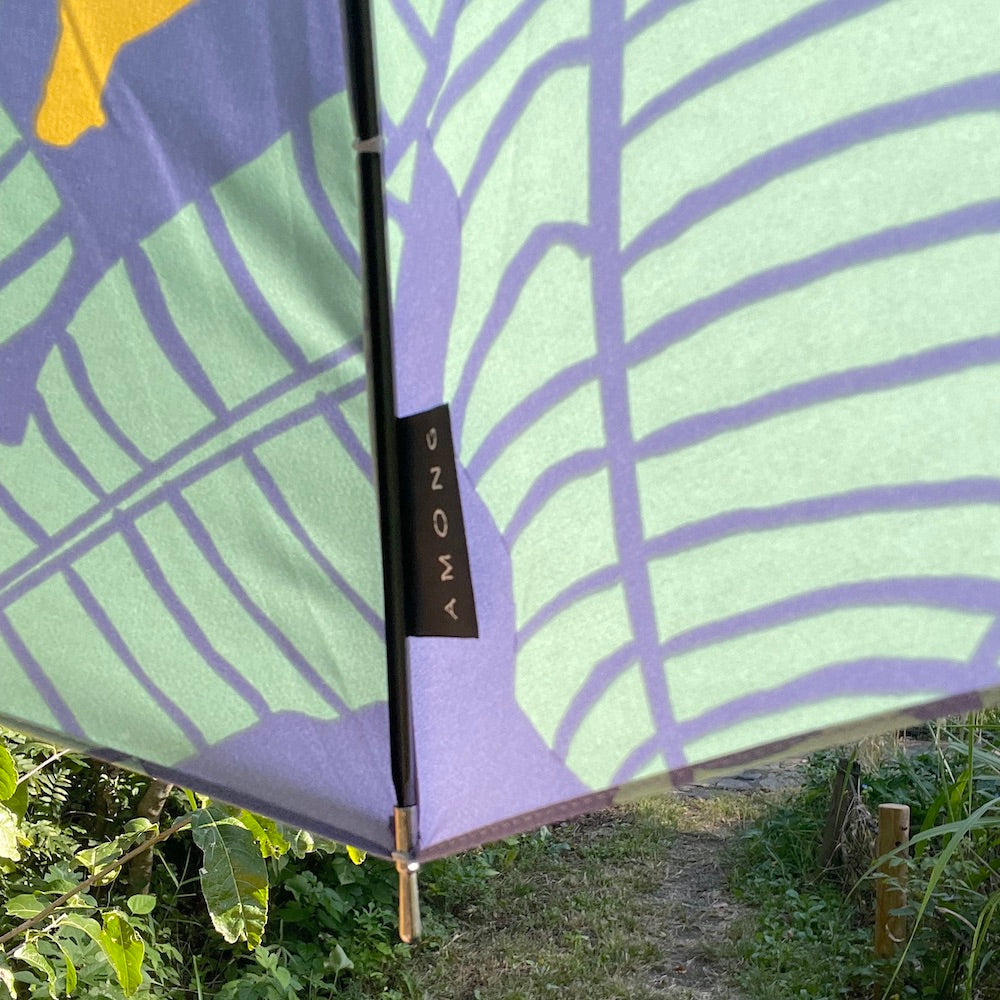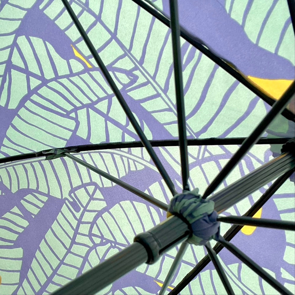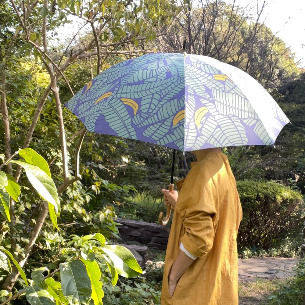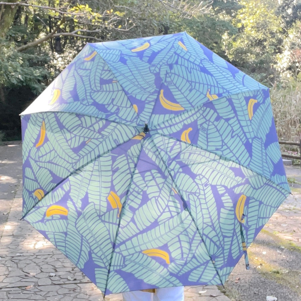 傘を開けばそこは森!ニュアンスのあるグリーン系は落ち着いた中にも、バナナがちらり。大人っぽいのにユーモアいっぱい。雨の日も絶対楽しく過ごせます!