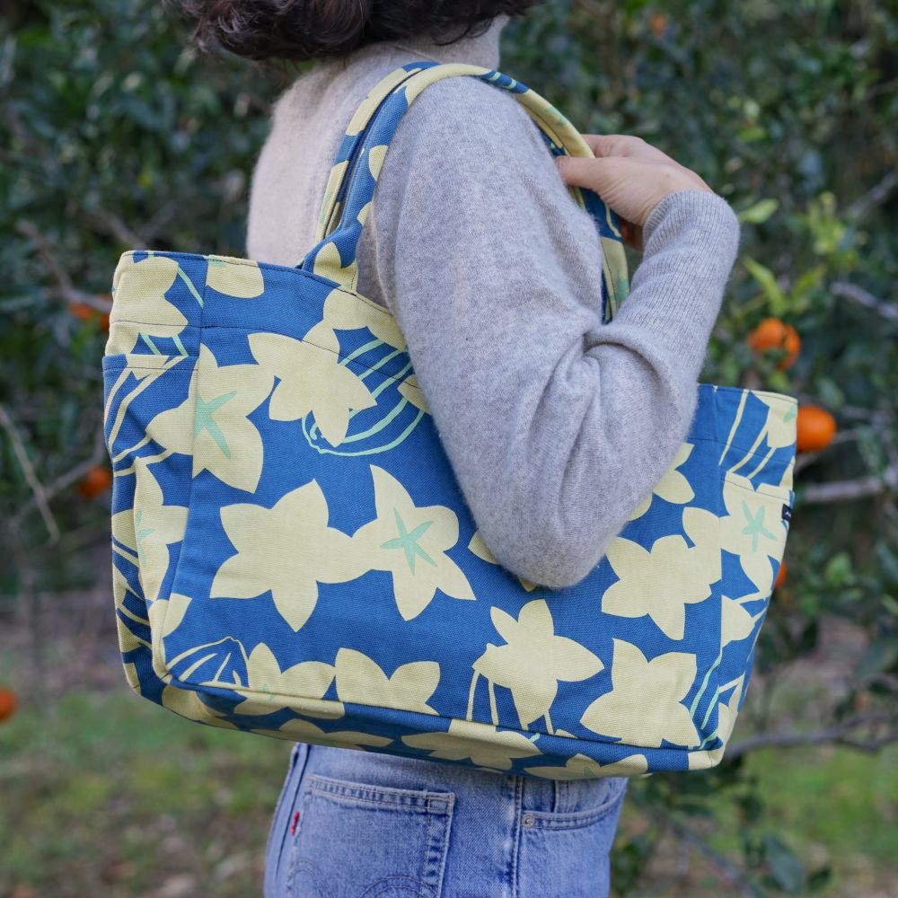 たわわに実るスターフルーツの柄を存分に堪能できる、サイドポケット付きトートバッグです。