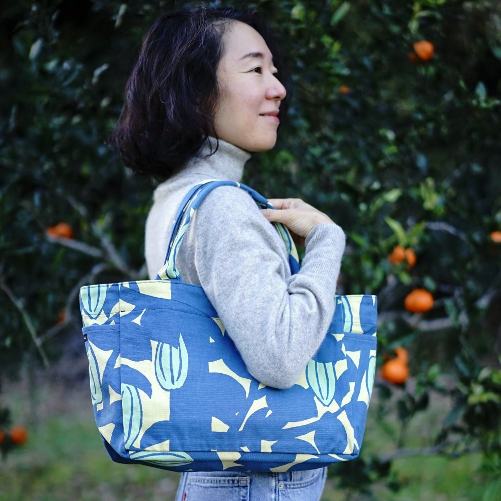 たわわに実るスターフルーツの柄を存分に堪能できる、サイドポケット付きトートバッグです。