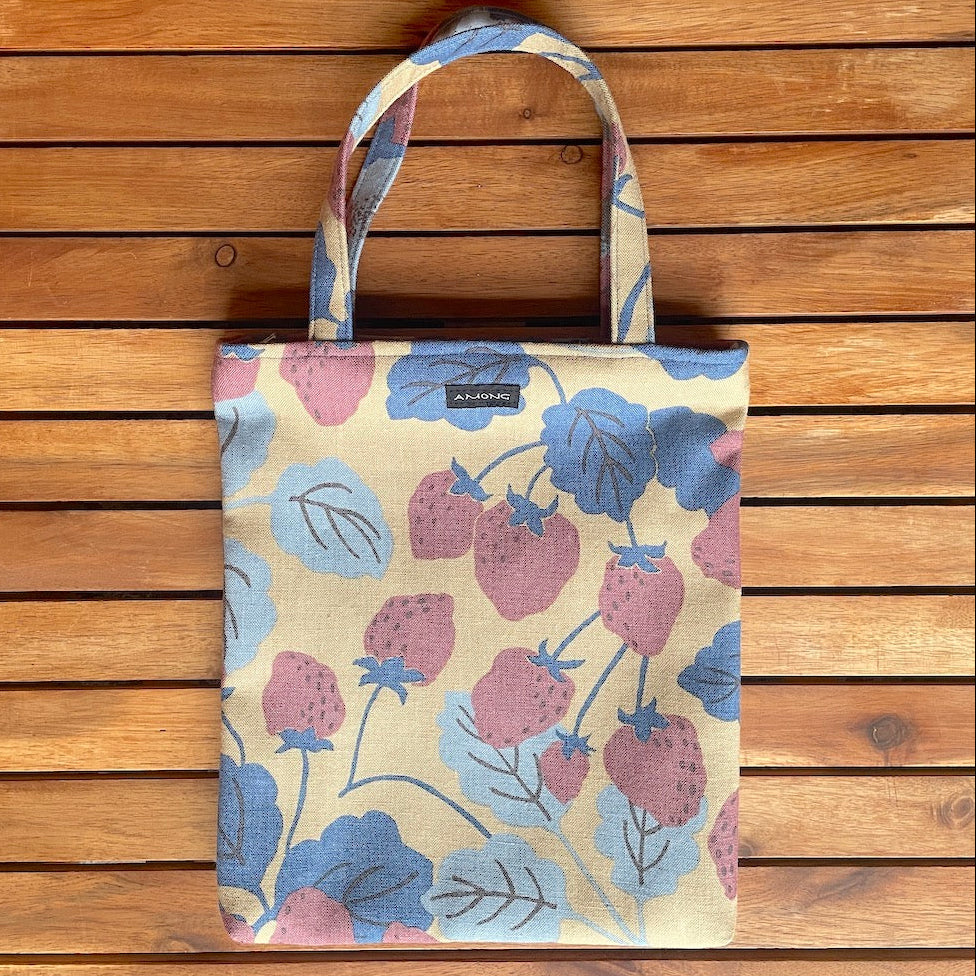 一期一会のテキスタイルはイチゴ柄。