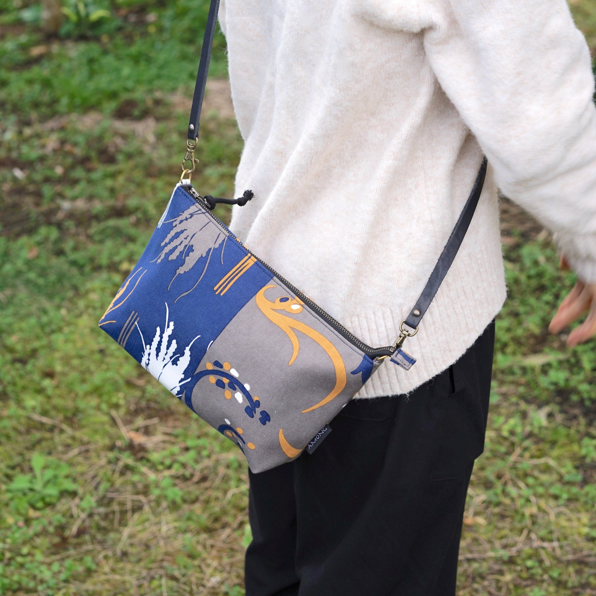 ミニショルダー 「イネ」オイシイネ!_稲穂&田んぼ(ネイビー&ブラウン)
