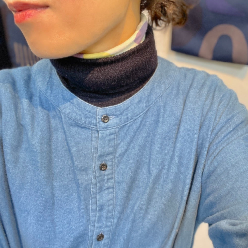テンキ柄のプチスカーフは優しいパープルが印象的。首元にくるっとひと巻き、ヘアアクセとしてもどうぞ!