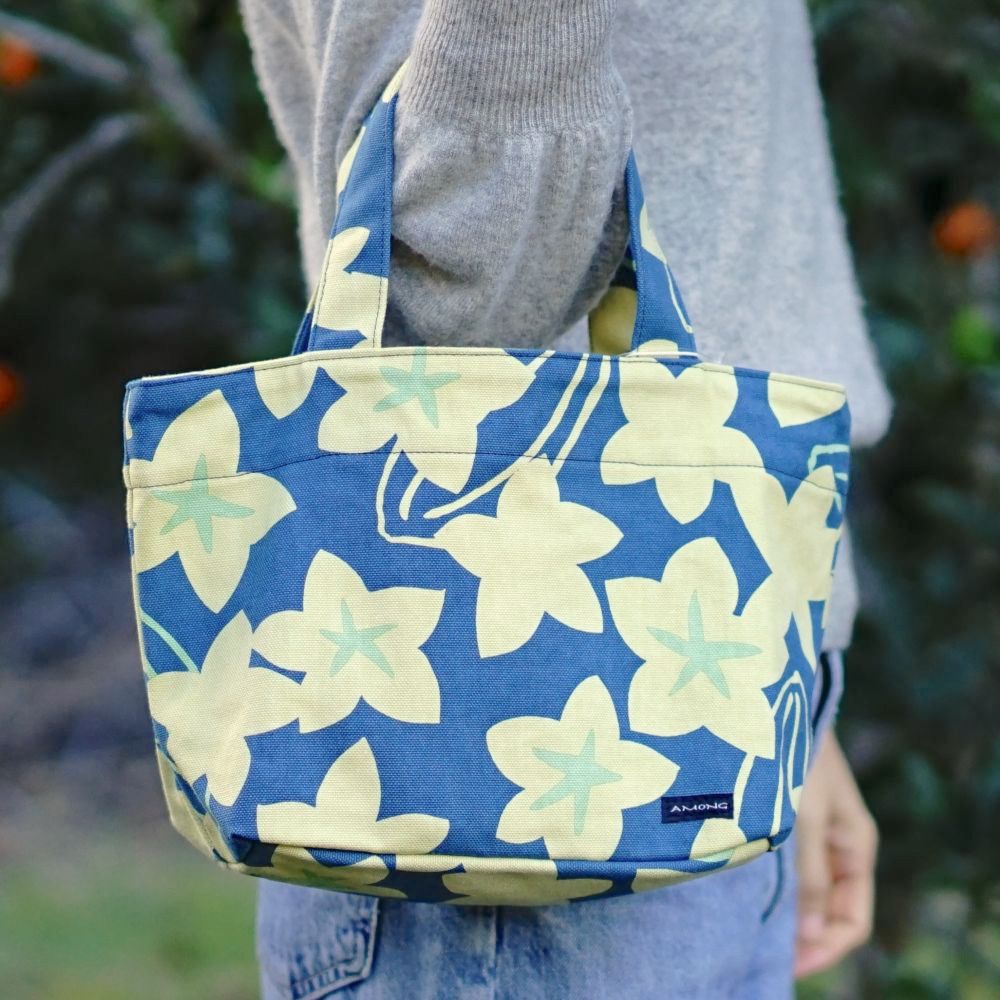 スターフルーツ柄のSサイズトートバッグです。 夜空に輝くスターのようなモチーフが楽しいバッグ。シンプルコーデのポイントにも大活躍間違いなし。