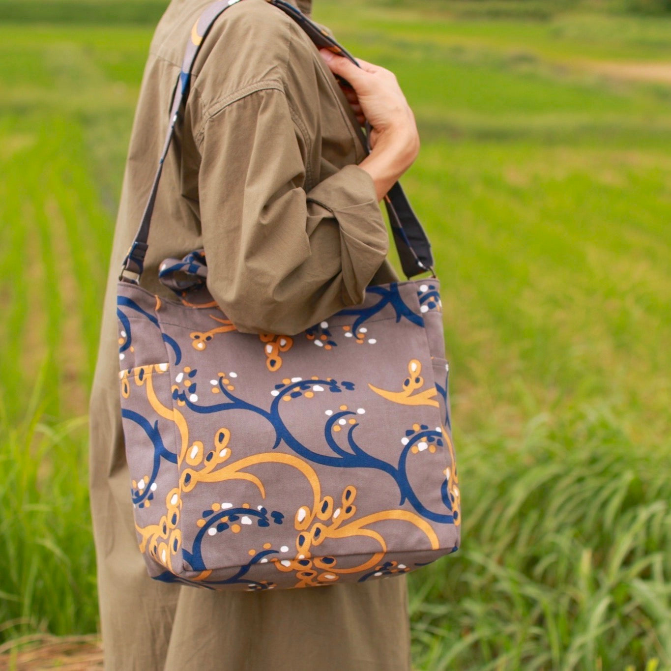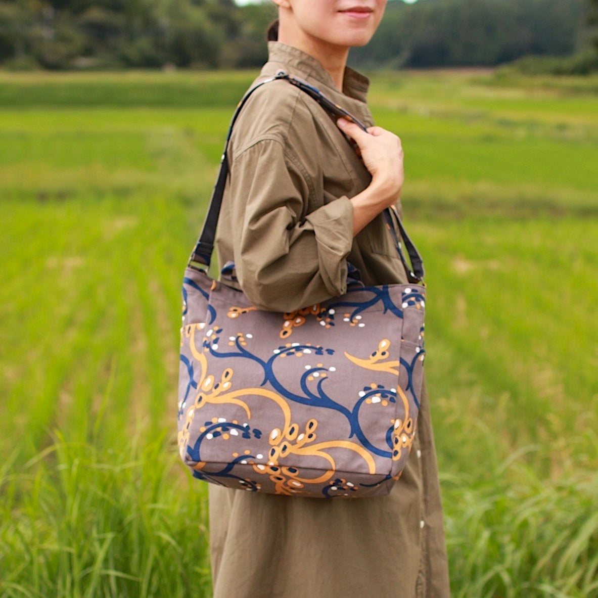 人気の稲柄、オイシイネ!のショルダートートは大ぶりのモチーフを存分に楽しめます。