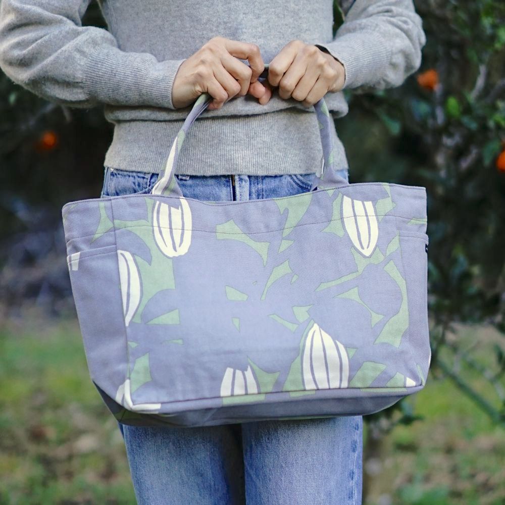 ユーモラスな果実をデザインに。自分らしさを遊ぶ大人のためのサイドポケット付トートバック(Sサイズ)が出来上がりました!